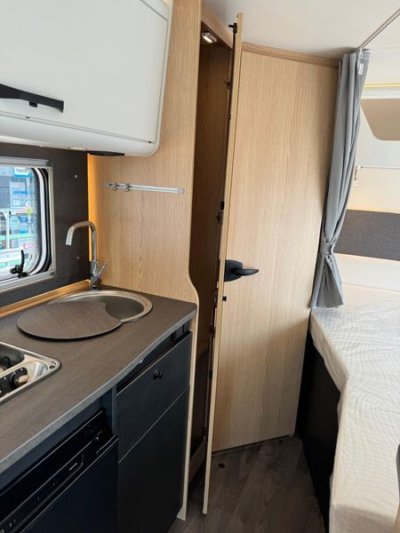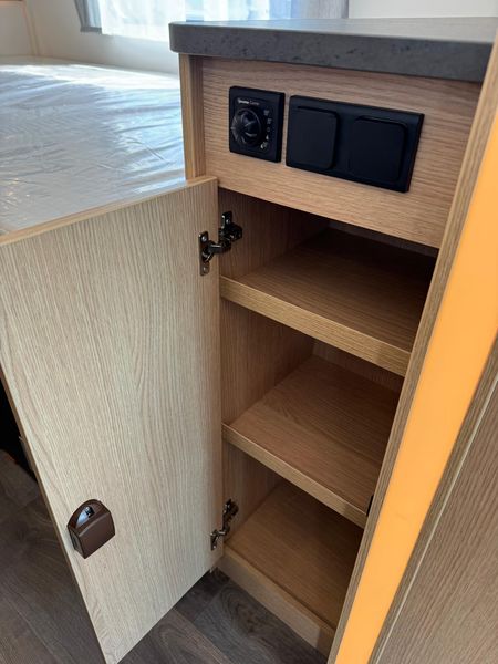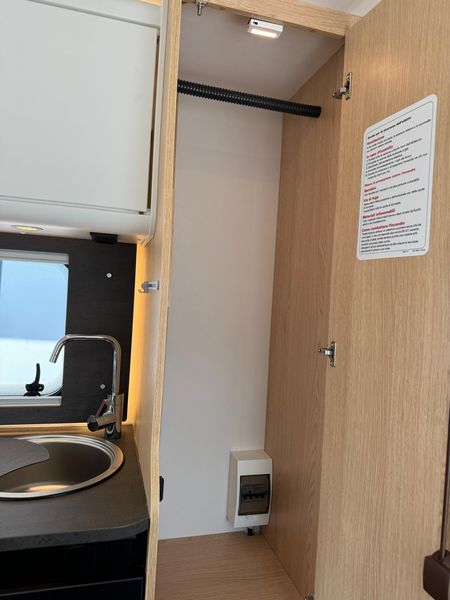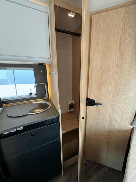 Gli spazi interni sono ottimizzati con armadio e numerosi vani portaoggetti, ideali per organizzare al meglio tutto il necessario per la vacanza.