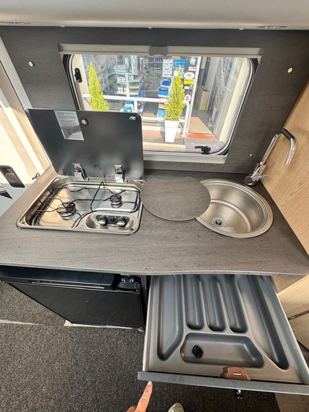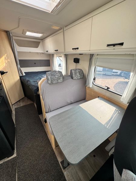 La dinette è ampia e versatile: il tavolo allungabile, insieme ai sedili della cabina guida girevoli, crea una confortevole zona pranzo dove è possibile mangiare comodamente anche in 4 persone.