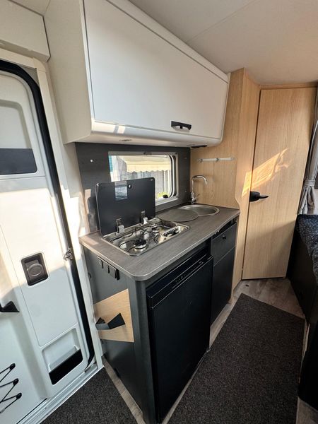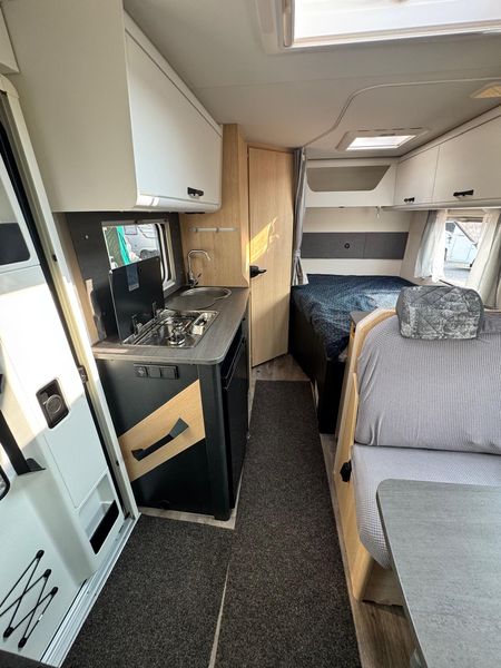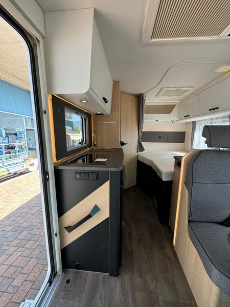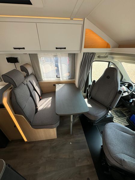 Camper semintegrale a 2 posti, la scelta perfetta per chi desidera spazi comodi, grande praticità e dimensioni compatte, simili a quelle di un van. Ideale per coppie che vogliono muoversi agilmente senza rinunciare al comfort di un vero camper.
