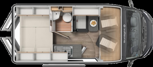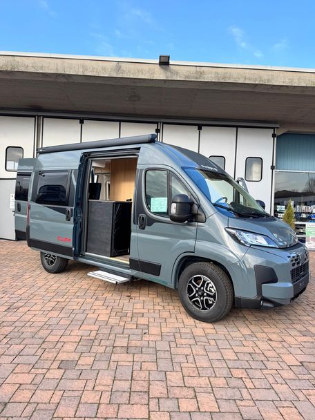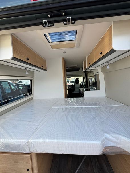 Camper furgonato Sunlight Cliff 540: il furgonato tedesco del prestigioso gruppo Hymer, sinonimo di elevata qualità costruttiva e know-how superiore. Compattissimo con soli 540 cm di lunghezza e 205 cm di larghezza, si guida e si parcheggia come un’auto, ma all’interno offre tutti i comfort di un camper: cucina completa con fornelli e frigorifero, bagno con WC e doccia con acqua calda, e riscaldamento indipendente che ti permette di viaggiare anche nei mesi invernali senza rinunce.
