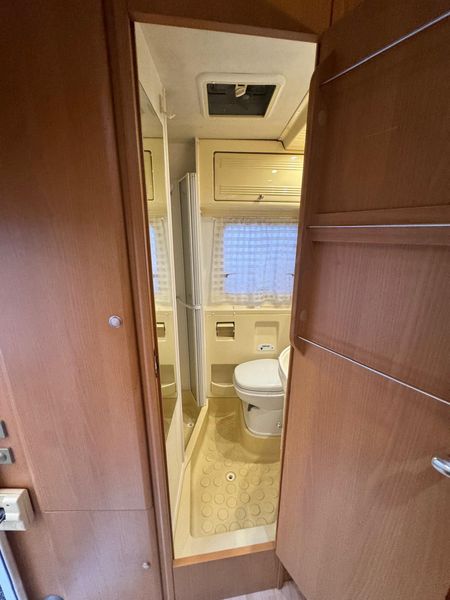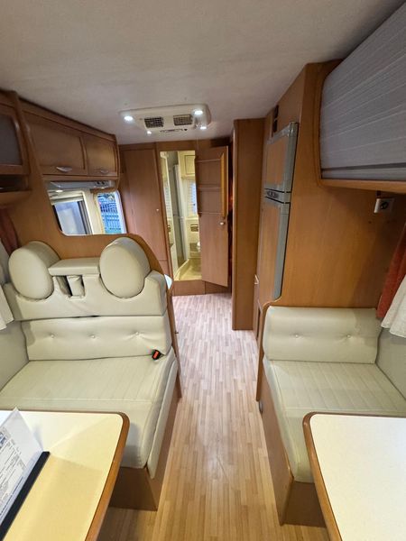 Comfort di bordo: riscaldamento, boiler acqua calda, oscuranti e zanzariere, ampi vani di stivaggio e garage posteriore. Meccanica Fiat Ducato 2.3 130 CV, affidabile e brillante, patente B.
