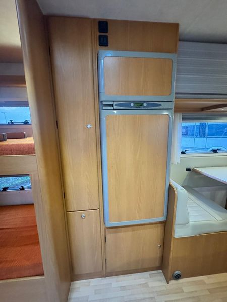 Zu verkaufen: XGO Family 104, ein ideales Familien-Wohnmobil mit sehr praktischer Raumaufteilung. Großes Alkoven-Doppelbett, Etagenbetten im Heck sowie umbaubare Dinette für weitere Schlafplätze. Doppel-Dinette, Küche mit 3-Flammen-Kocher, großem Kühlschrank und Bad mit separater Dusche.