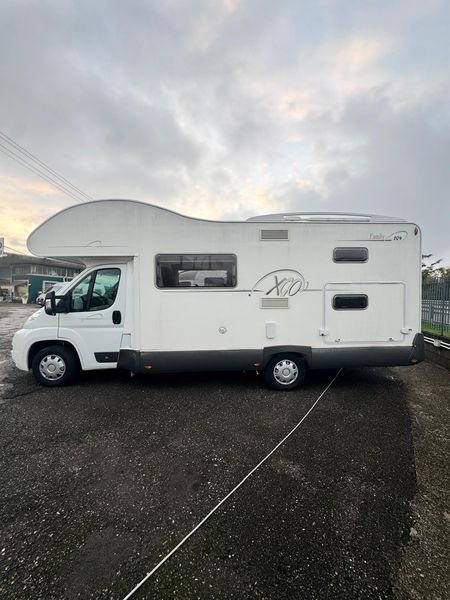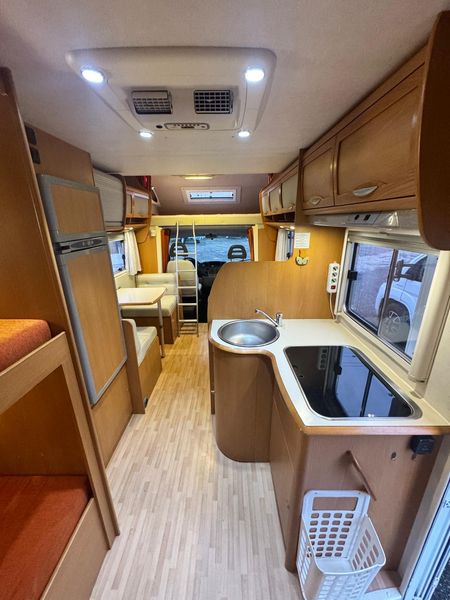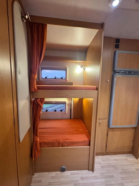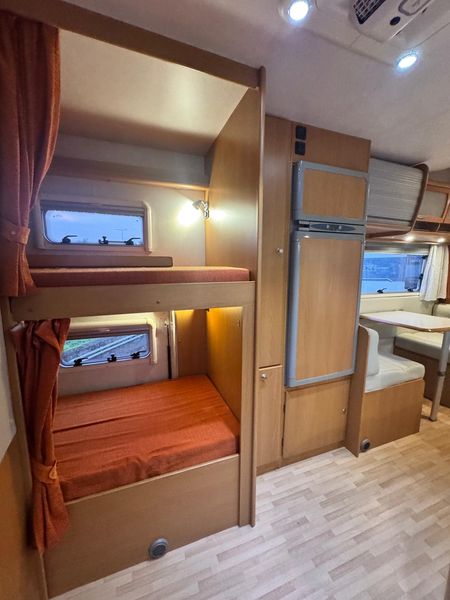 For sale: XGO Family 104 overcab motorhome, perfect for families or groups thanks to its smart and spacious layout. Large overcab double bed, rear bunk beds, and convertible dinette for additional sleeping space. Features a double dinette, fully equipped kitchen with 3-burner hob, large fridge, and bathroom with separate shower.