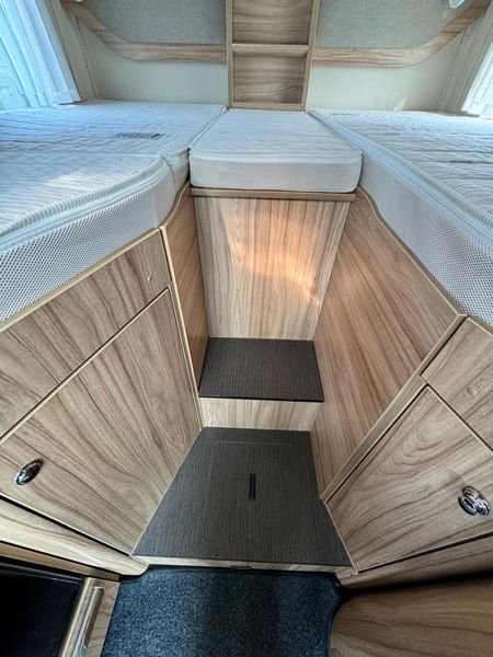 • Predisposizione radio/TV incl. presa 12 V e 230 V, 2 altoparlanti cabina, 2 altoparlanti camera anteriore, 2 altoparlanti camera posteriore, radio e antenna DVB-T2